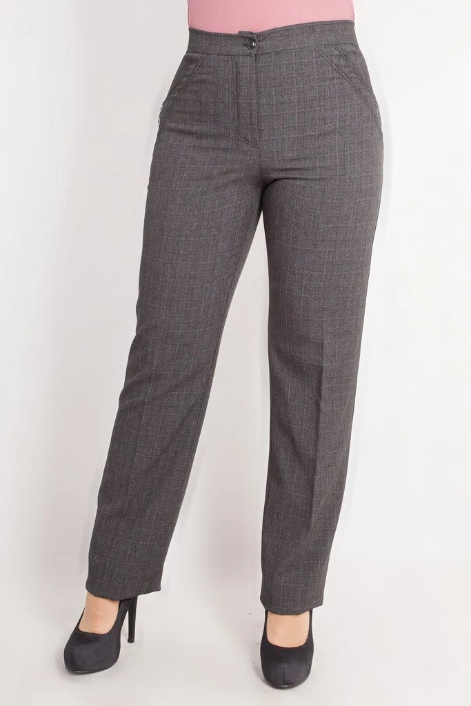 -Посадка высокая, силуэт брюк полуприталенный.