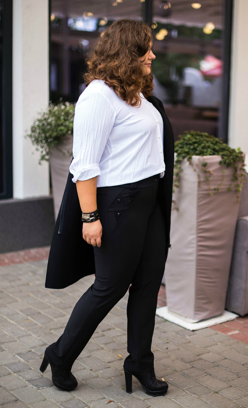 На фото черный цвет. Модель размера 54, рост 165 см.