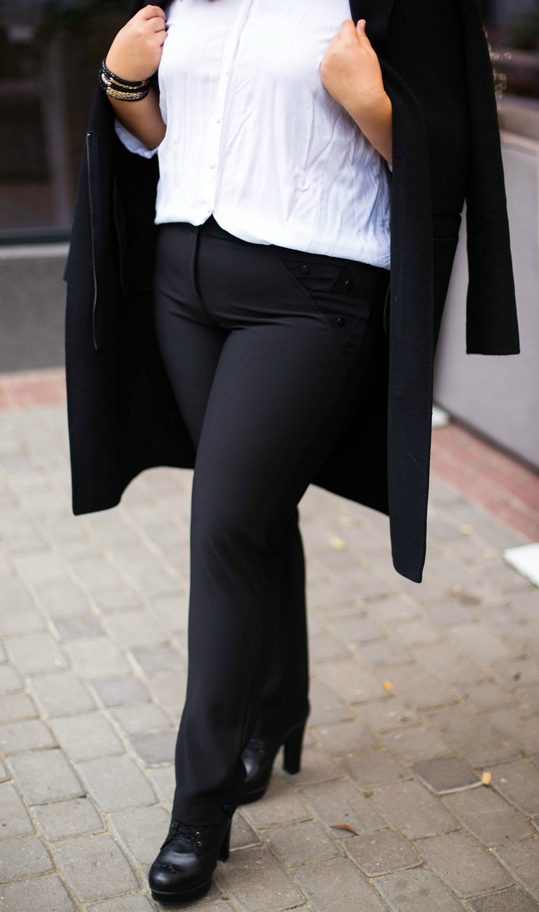 Женские брюки зауженые с высокой посадкой черного цвета на байке