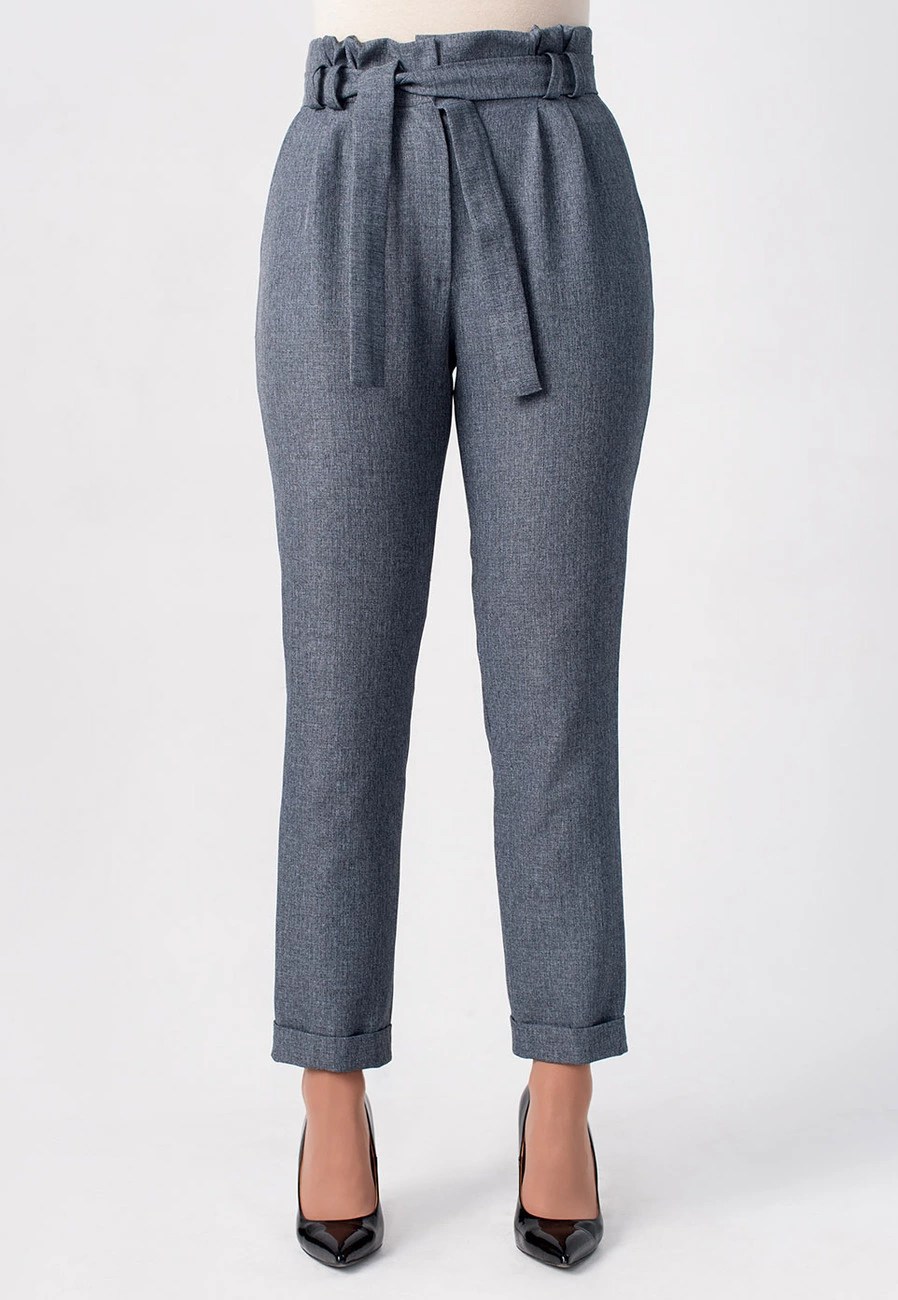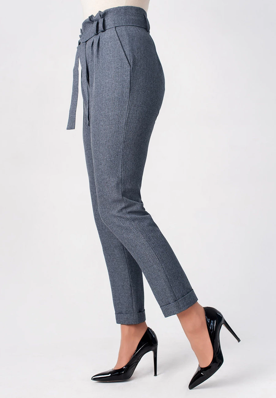 Женские брюки с завышеной талией серого цвета