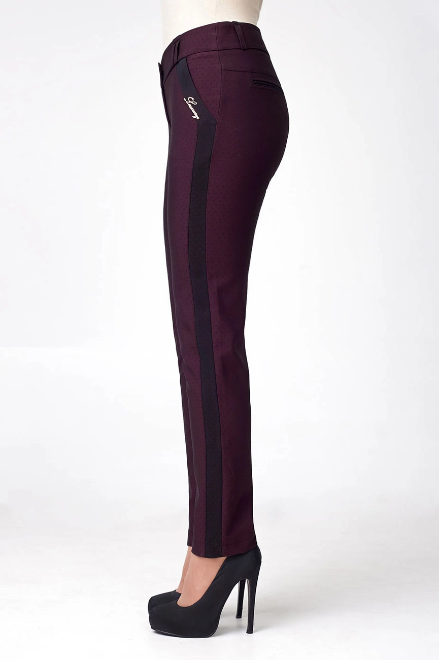 Женские брюки зауженые с высокой посадкой цвета марсала с